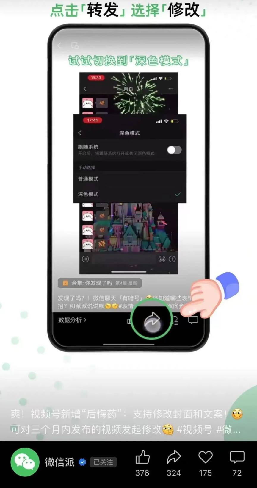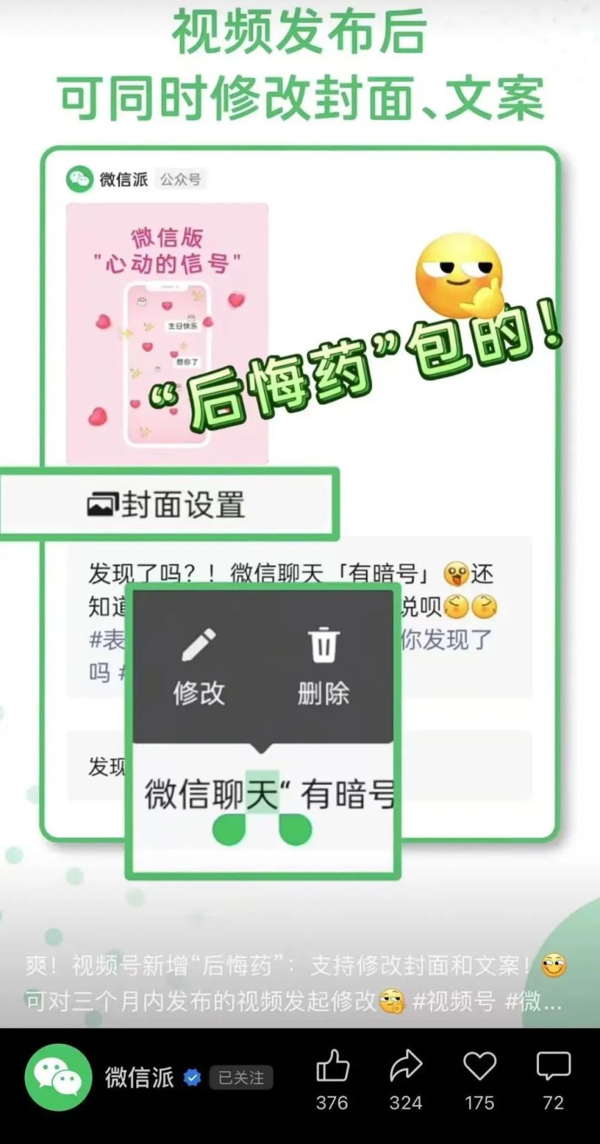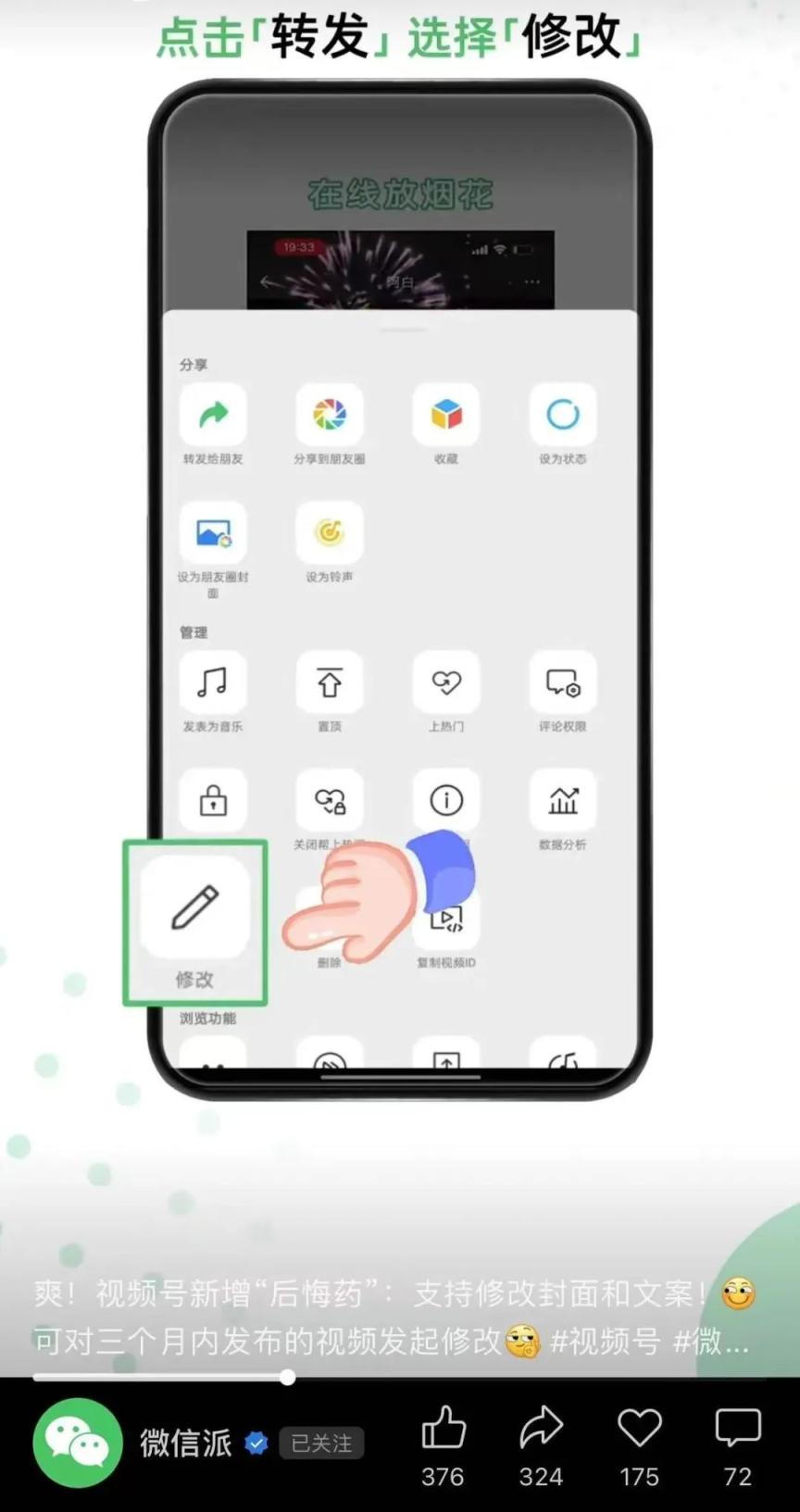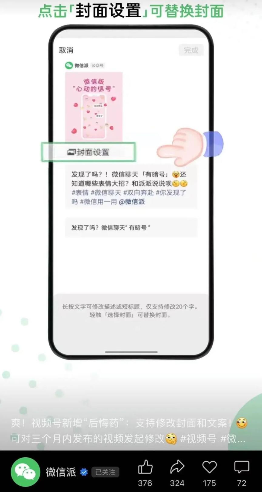 据微信派6日消息配资知识论坛网,视频号可以修改封面和文案了。